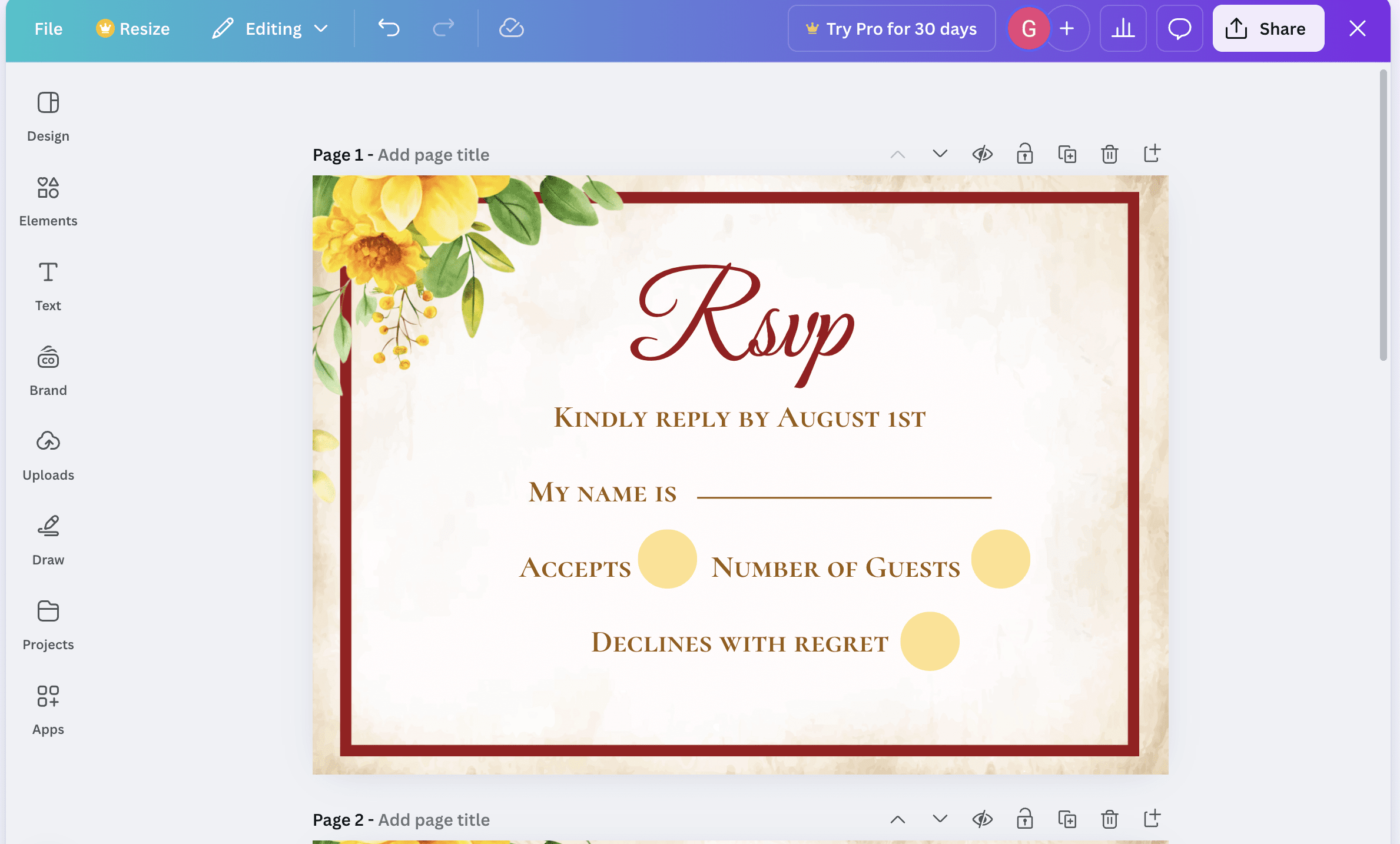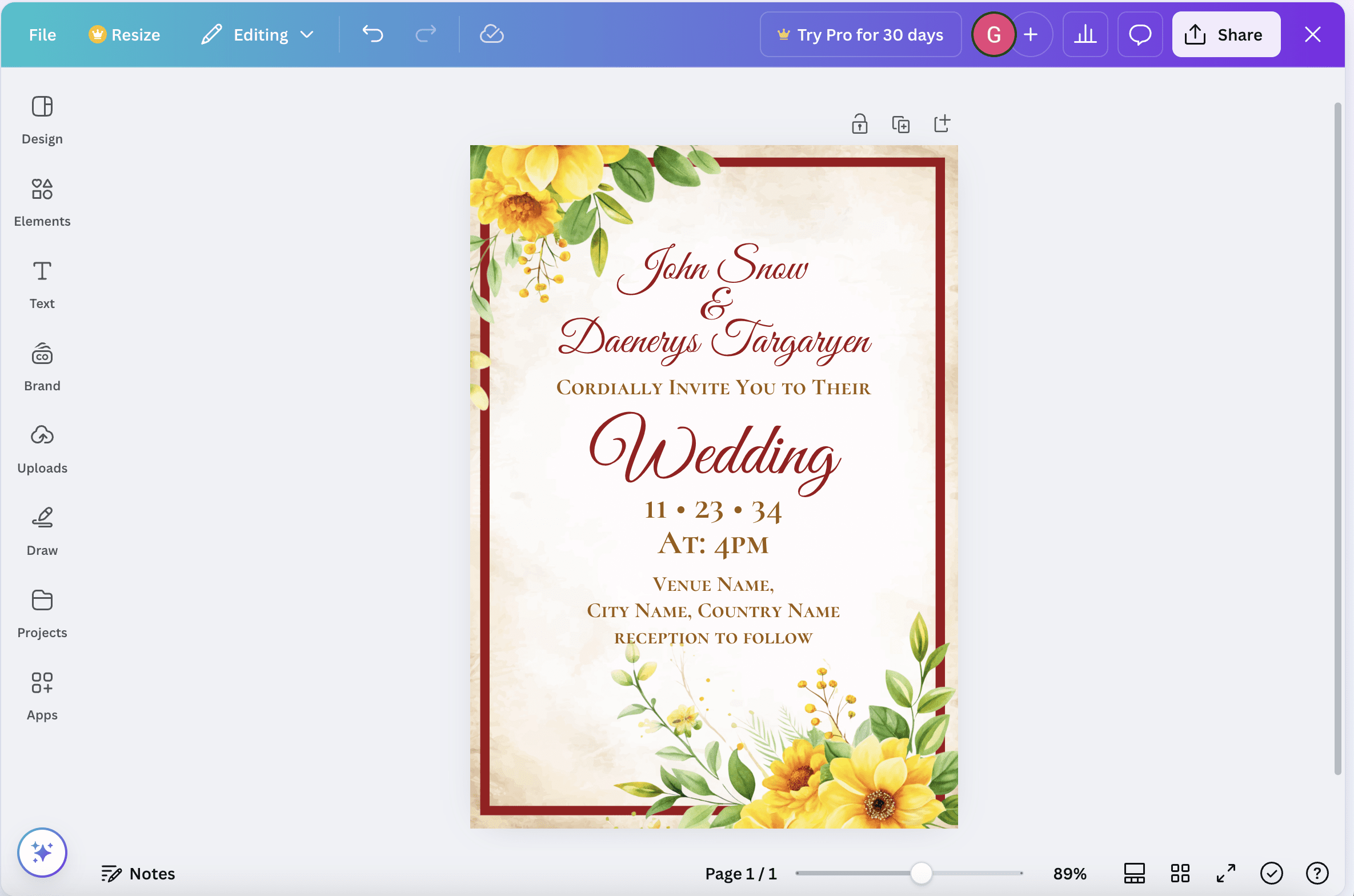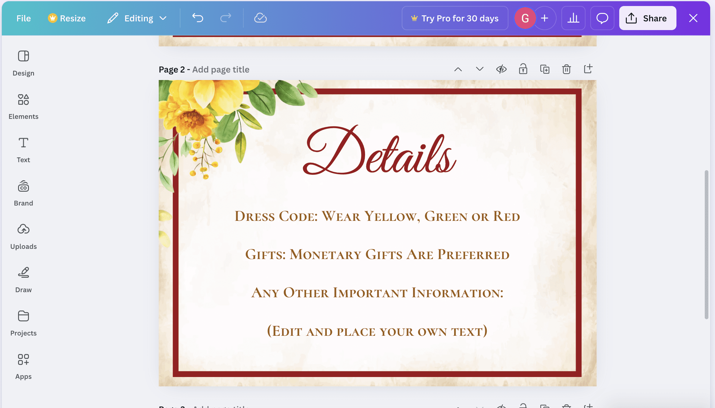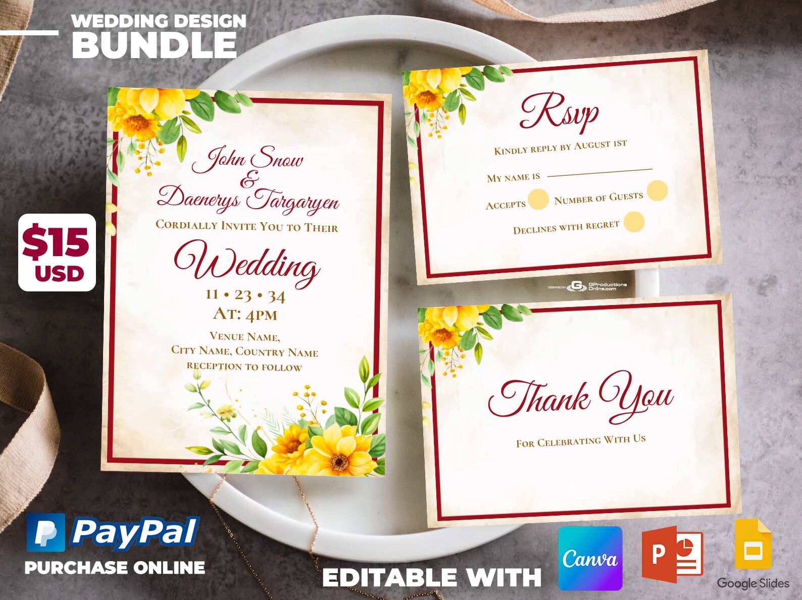 Wedding Design Bundle (Yellow, Green, Red) – Fully Editable Templates for Your Special Day 🌻✨